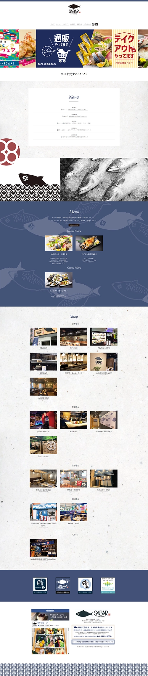 サイト全体からサバ一本であるというアピールをしました。世界中の料理をサバ料理へとアレンジしたメニューが特徴のお店でしたので、メニューページにはそれを感じられるようなデザインに。
